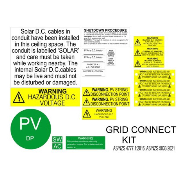 Grid connect label kit - VIC Manufacturers Part Number KNS09 BayWa r.e. Part Number SAS31111-VIC Available for ✅ Consumer-Account ✅ Trade-Account $24.00 (excl. GST) WarehouseQty AvailableQty RestockBayWa WA Perth77 -+ Backorder Product description Technical details Product Images BackProduct DescriptionGrid connect label kit suitable for all states, engraved traffolyteBack Dimensions 9 x 16 x 1.5 cm Weight 0.081kg Back