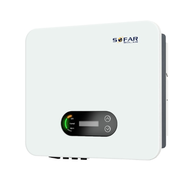 Sofar 5kW, 3P, grid inverter Manufacturers Part Number 5KTLX-G3-A BayWa r.e. Part Number IN401310 Available for ✅ Consumer-Account ✅ Trade-Account $874.00 (excl. GST) WarehouseQty AvailableQty RestockBayWa WA Perth3 -+ Product description Technical details Product Images BackProduct DescriptionOur Three Phase grid-tied string inverters are perfect for large Residential / Small Commercial installations. Featuring high efficiency and dual MPPTs with 150% DC overload capability this is the perfect inverter to maximize a larger-scale solar installation. It has a low start-up voltage and thanks to its I-V curve scanning function you will always know your system is operating in an optimal state. With remote firmware upgrades available, the system can be updated without the extra expense of an onsite visit.Back Watt 5,000 Efficiency 98.6% Phase 3-phase MPPT 2 Display No DC connection unknown Dimensions 38.5 x 18.2 x 43 cm Weight 17.0kg Product warranty 10 years Extensions for CEC Certification Clean Energy Council - Approved InvertersBack DocumentsDatasheetWarrantyInstallation guide