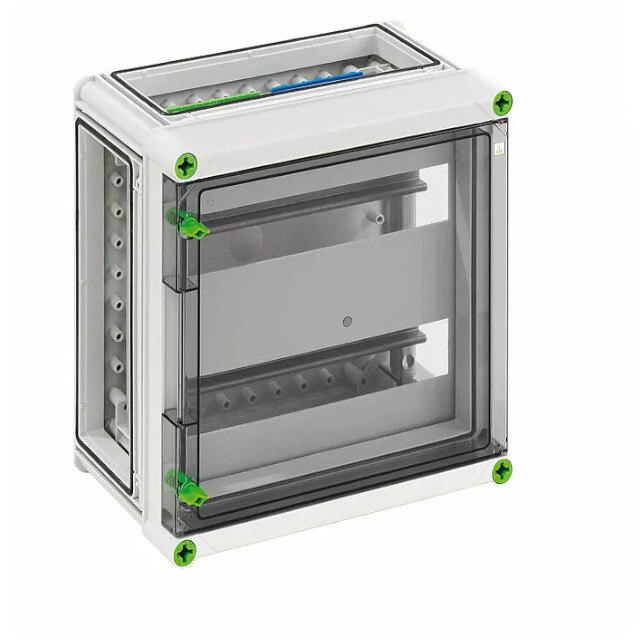 Spelsberg enclosure GTA 228-KT-t Manufacturers Part Number 1622801 BayWa r.e. Part Number EN3-GTA-228-KT-t Available for ✅ Consumer-Account ✅ Trade-Account $205.00 (excl. GST) WarehouseQty AvailableQty RestockBayWa WA Perth0 -+ Backorder Product description Technical details Product Images BackProduct DescriptionModule enclosure - Industrial Quality -, 2-row, PE/N terminal, with each 2 clamping points 16 mm², 10 clamping points 6 mm², masking and labelling strips, 3 x housing connectors 320x320x179Back Dimensions 32 x 17.9 x 32 cm Weight 2.92kg Back DocumentsDatasheet