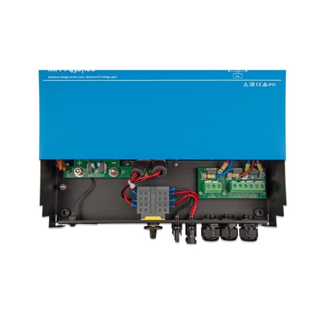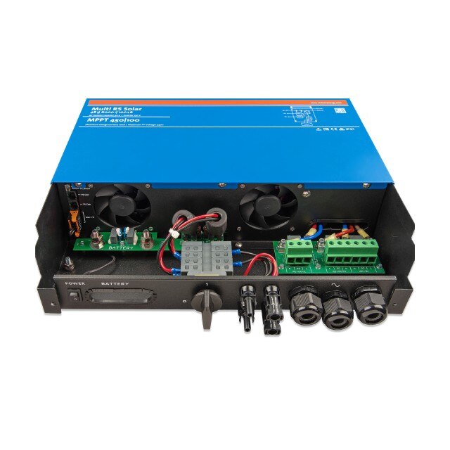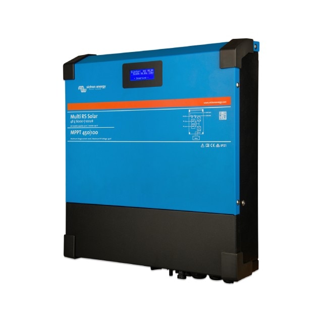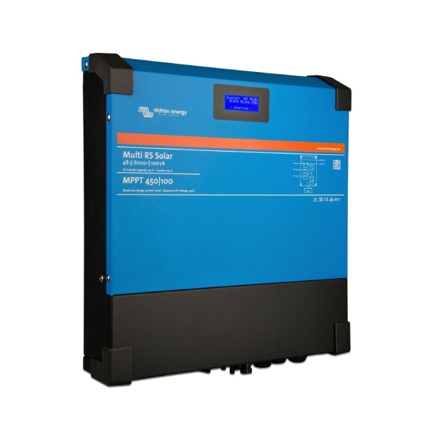Victron Multi RS Solar 48/6000/100-450/100 Manufacturers Part Number PMR482602020 BayWa r.e. Part Number IN804620 Available for ❌ Consumer-Account ✅ Trade-Account $2,364.30 (excl. GST) WarehouseQty AvailableQty RestockBayWa WA Perth0 -+ Product description Technical details Product Images BackProduct Description The Multi RS Solar 48/6000 is a 48V 6kVA Inverter/Charger with two independent 3kWp PV 450V MPPT tracker inputs for 6kWp PV total. Thanks to high frequency technology and a new design this powerful inverter weighs only 11kg. In addition to this it has an excellent efficiency, low standby power, and a very quiet operation. The display reads battery, inverter and solar parameters. The same parameters can be accessed with a smartphone or other Bluetooth enabled device, using the VictronConnect app. In mid-2023 the Multi RS was revised from a single MPPT tracker to a dual MPPT tracker model. Back Watt 6,000 Phase 1-phase MPPT 2 Display No DC connection Yes Dimensions 34 x 53 x 44 cm Weight 35.0kg Product warranty years Extensions for 5 years CEC Certification Clean Energy Council - Approved InvertersBack DocumentsDatasheetInstallation guideCertificates Test Certificate - Victron Multi RS Solar 48/6000