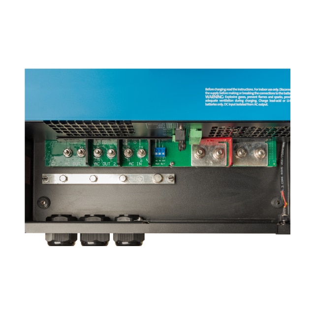 It has all the features of the MultiPlus, plus an external current transformer option to implement PowerControl and PowerAssist and to optimize self-consumption with external current sensing (max. 32A).