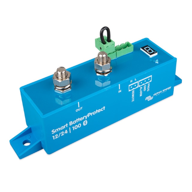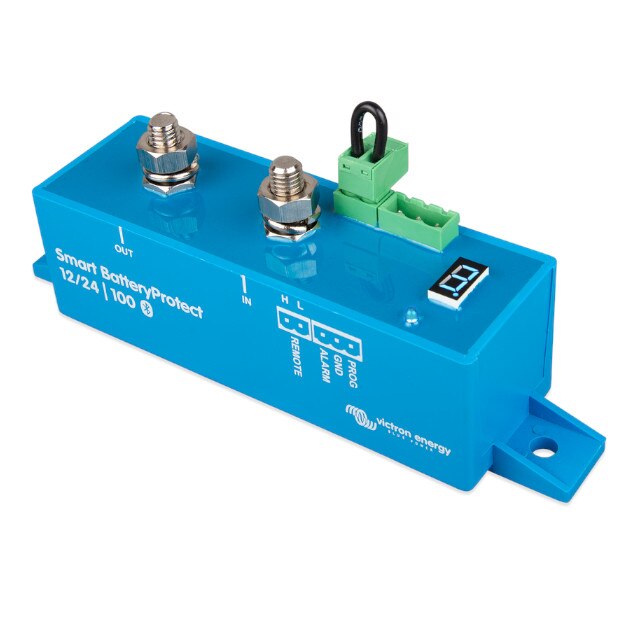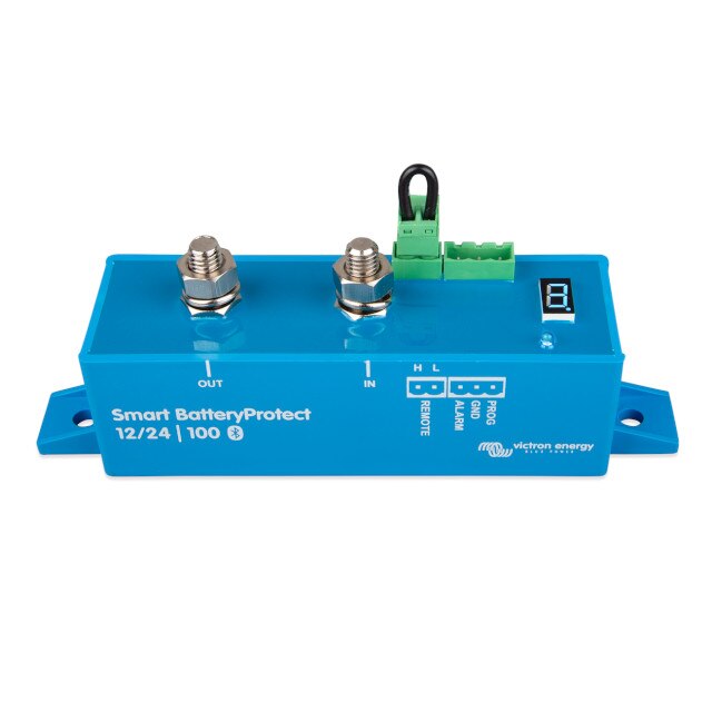 Victron Smart Battery Protect 12/24V 100A Manufacturers Part Number BPR110022000 BayWa r.e. Part Number VB1032170 Available for ❌ Consumer-Account ✅ Trade-Account $109.80 (excl. GST) WarehouseQty AvailableQty RestockBayWa WA Perth1 -+ Product description Technical details Product Images BackProduct DescriptionThe Smart BatteryProtect disconnects the battery from non-essential loads before it is completely discharged (which would damage the battery) or before it has insufficient power left to crank the engine.When using Bluetooth to program the Smart BatteryProtect any required engage/disengage levels can be set. Alternatively, one of nine predefined engage/disengage levels can be set with the programming pin (see manual). If required, Bluetooth can be disabled.The Smart BatteryProtect is a uni-directional device. It can only deal with the current in one direction, so either current to a load, or current from a charger, but not both currents at the same time. In addition to this, current only can only flow from the IN terminal to the OUT terminal. In case of use with a load, the battery connects to the IN terminal, and in case of use with a charger, the charger connects to the IN terminal. Back Dimensions 5 x 7.5 x 6.5 cm Weight 0.075kg Back DocumentsDatasheetInstallation guideCertificates Declaration of Conformity - Victron Smart Battery Protect Download Information How to program the BatteryProtect Introduction: BatteryProtect