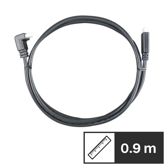 The VE.Direct cable, a versatile and essential component for connecting various devices, is offered in a range of lengths to accommodate diverse installation requirements. This cable is designed with practicality in mind, featuring both a straight and a 90-degree angle model. The straight version is ideal for straightforward connections where space is not a constraint, while the 90-degree angle model provides a more compact solution, perfect for tight spaces or when a more discreet installation is desired. Both variants ensure reliable and efficient communication between compatible devices, making the VE.Direct cable a flexible choice for a variety of applications.